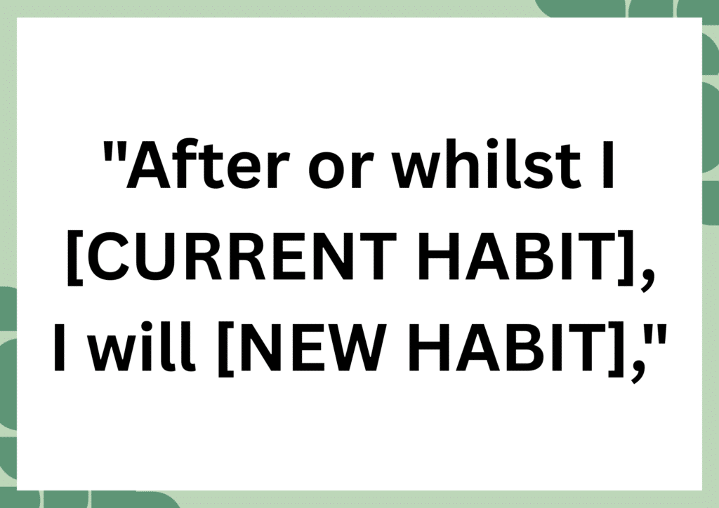 It’s also worth choosing a calmer time in your day. For instance if mornings feel rushed, stack your habit in the afternoon or evening. You can adjust your habit stack to suit any daily routine changes or goal changes.